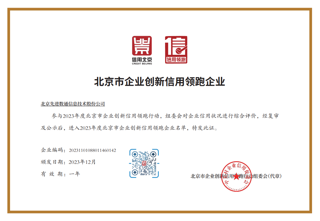 近期,2023信用北京暨第九届信用中关村论坛在北京隆重举办。会上正式颁布了2023年度北京市企业创新信用领跑企业入围名单,北京bti必一体育(b-sports)信息技术股份公司(以下简称“bti必一体育(b-sports)”)与旗下全资子公司北京泛融科技有限公司(以下简称“泛融科技”)成功入选。