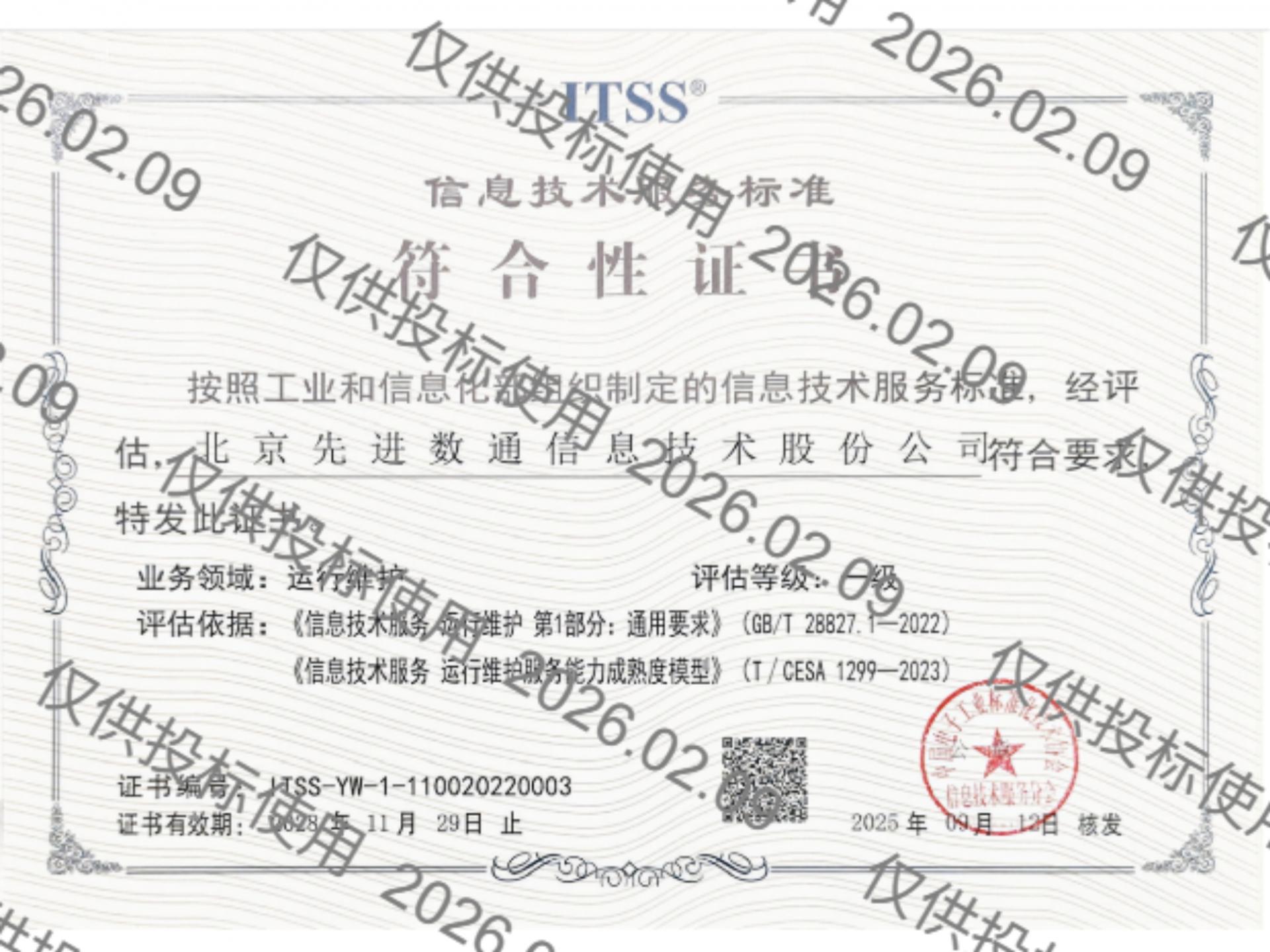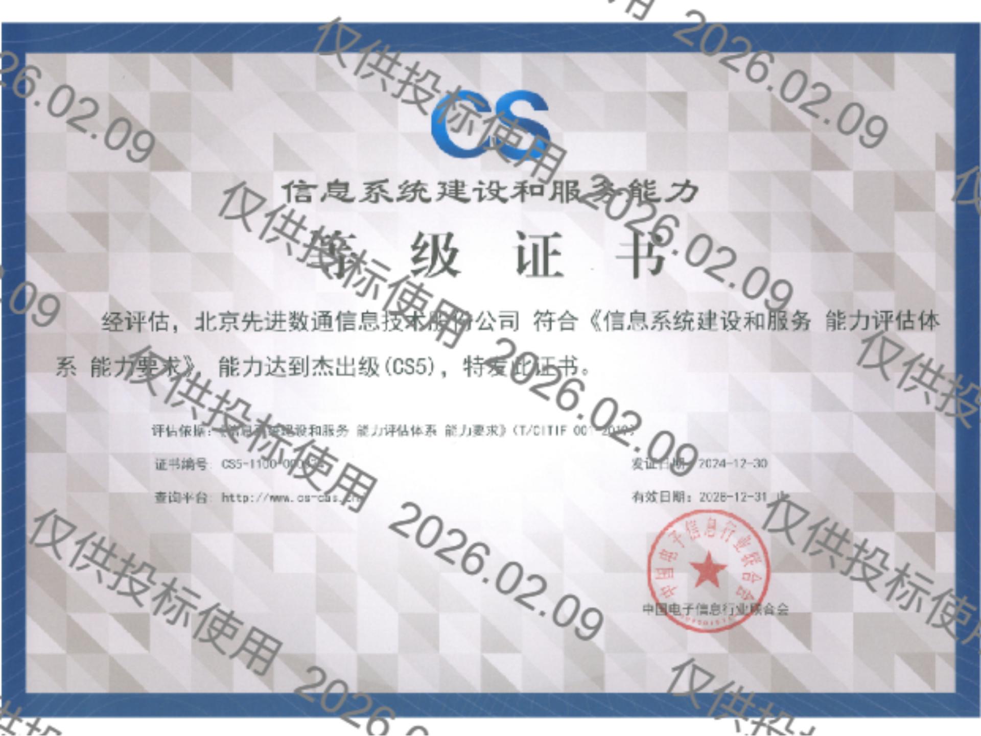 bti必一体育(b-sports)先后取得CMMIL5、软件能力成熟度五级(SPCA 5)、信息系统建设和服务能力评估体系(CS)5级、ITSS成熟度一级、信息系统安全集成服务资质二级、信息系统安全运维服务资质二级、国产化信息系统集成和服务能力评估四级(LS4)、北京市企业技术中心等资质认证,并取得ISO9001、ISO20000、ISO27001、ISO14001、ISO45001、ISO22301、ISO37001、ISO28001、GBT29490等标准体系认证,具备行业领先的技术开发、工程实施及服务保障能力。