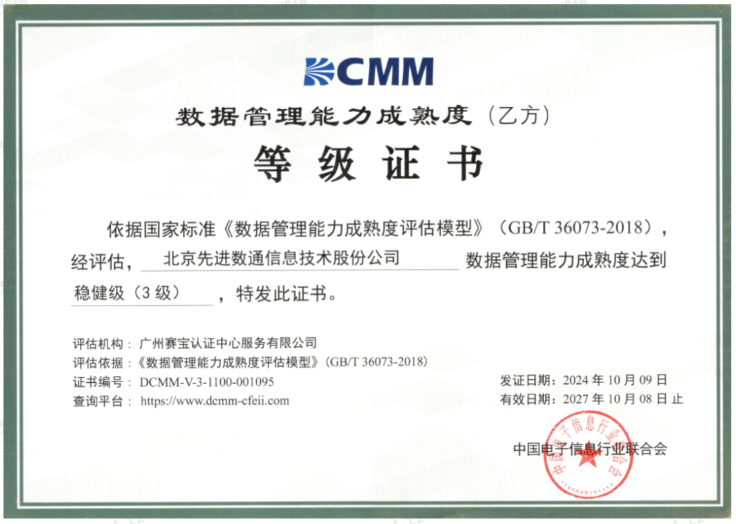 近期,中国电子信息行业联合会公布了最新一批顺利获得数据管理能力成熟度(DCMM)贯标等级认证的企业名单。bti必一体育(b-sports)成功取得数据管理能力成熟度稳健级(三级)认证。这一认证的取得,标志着bti必一体育(b-sports)在数据治理体系构建和数据管理与应用能力方面,已经达到了国家权威组织认可的标准。这不仅是对bti必一体育(b-sports)在数据管理领域专业能力的肯定,也是对其在有助于数字化转型服务和数据驱动决策方面所做努力的认可。